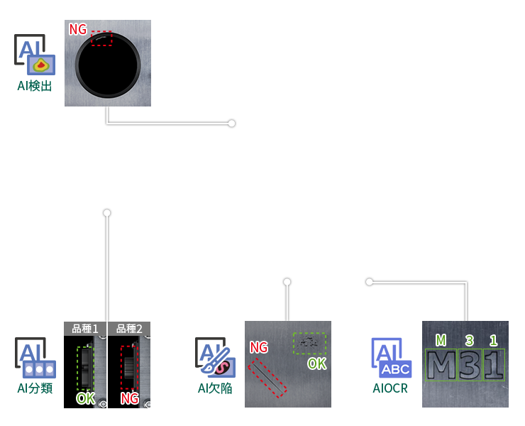 VSシリーズは不良品学習AI、良品学習AI、ルールベースの融合で用途、目的に応じて最適なツールの組み合わせが自由自在です。