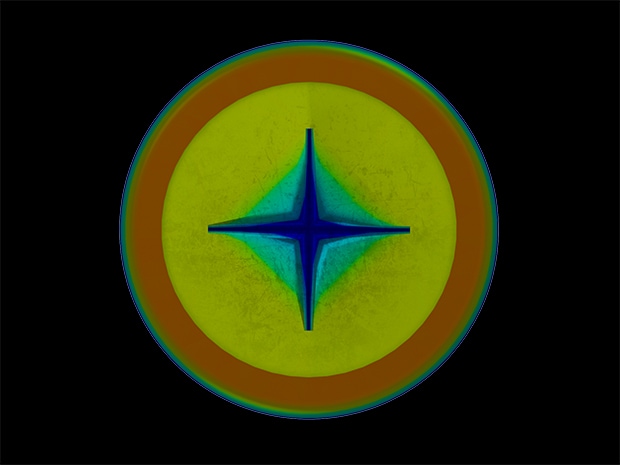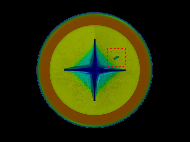 ワークの表面状態の影響を受けずに、任意の深さ以上の凹みだけを欠陥として検出することができます。LJ-S8000シリーズのオートスキャン機構により、インデックステーブル上にも取り付けるだけで3D検査が可能です。