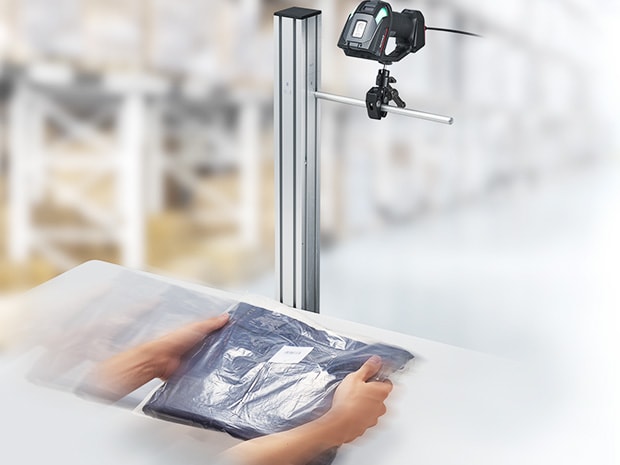 物流倉庫やECの出荷工程において、両手で商品を扱いながらのバーコード読み取りは、作業効率のボトルネックになりがちです。特に、ビニール袋に梱包されたアパレル商品などの検品・仕分け作業では、ハンディスキャナを持つ手間や、袋のシワ・反射による読み取りエラーが課題となります。
