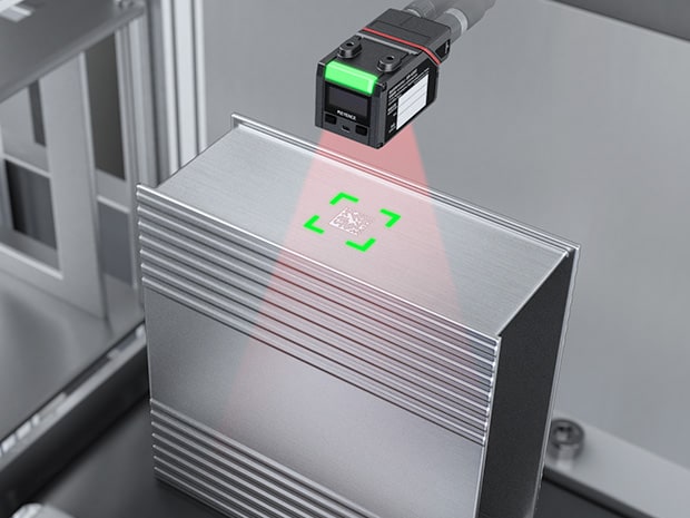 キーエンスのAI搭載コードリーダ「SR-Xシリーズ」は、このような悪条件下でも圧倒的な読み取り性能を実現します。高度な画像処理アルゴリズムと、ハレーションを抑制する偏光フィルタなどの多彩な補正機能を搭載。ヘアライン加工された金属表面の反射を的確に抑え、傷や低コントラストで読み取りが困難だったデータマトリックスでも、瞬時に安定した読み取りを可能にします。これにより、これまで人の手で行っていた読み取り作業の自動化や、読み取りエラーによるライン停止のリスクを大幅に低減し、工場の生産性向上に大きく貢献します。