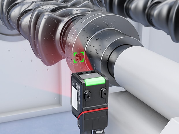自動車部品の製造工程、特にクランクシャフトのような金属部品のトレーサビリティ管理において、洗浄工程後のコード読み取りは大きな課題です。切削油などを洗い流した後、部品表面に付着した水滴が光を乱反射させ、ダイレクトパーツマーキング(DPM)されたQRコードやデータマトリクスのコントラストを著しく低下させます。これにより、従来のコードリーダーでは読み取りエラーが頻発し、生産ラインの停止や手作業による工数増加など、生産性低下の要因となっていました。