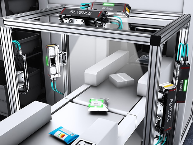 このアプリケーションでは、キーエンスのスキャントンネルシステム「STシリーズ」を活用しています。STシリーズは、その超広視野と長焦点により、コンベア上を流れる大小様々なサイズの段ボールや小袋、不定形な梱包物まで、一台で広範囲をカバーします。さらに、高速シャッターと独自のアルゴリズムにより、高速で移動するワークのコードも確実に捉え、仕分け作業のタクトタイムを大幅に短縮します。ビニール越しのコードや印字品質が低い難読コードでも安定した読み取りを実現するため、誤出荷を未然に防ぎ、トレーサビリティの向上にも貢献。物流DXや工場の省人化を強力に推進するソリューションです。