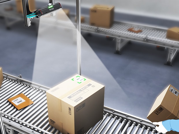 物流倉庫や製造ラインのコンベア上で、段ボール箱の上面にあるバーコードやQRコードの読み取りに課題はありませんか?高速で流れるワークや、箱の置き方がバラバラな場合、読み取りエラーは生産性低下の大きな原因となります。