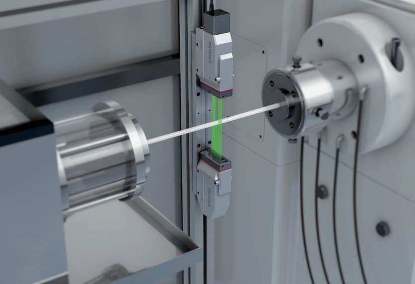 内視鏡の部材となるチューブの外径を連続測定します。L Sシリーズは16 0 0 0 回/ 秒の超高速測定が可能。搬送中に対象物がフレても、測定値がバラつくことが無く、安定した測定が可能です。