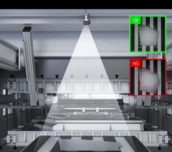 本来の目的は位置ずれ検知で、2枚取り検知は副次的な検出内容。トランスファープレスは下から持ち上げて次工程に送るような送り機構。アイドリング工程でずれた状態で設置されるとズレ押ししてしまい、次の絞り工程にて型を痛めてしまう可能性がある。どんなプレス機でも絞り加工は存在するが、トランスファーは、①送り機構上ずれが発生しやすい、②サーボに比べ板厚が厚い=型を痛めやすい、③速度が速いの三拍子がそろっており検出の必要性が高い。