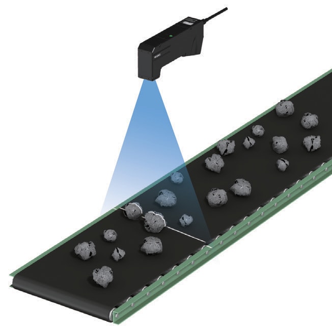 鉄鉱石の形状を3D測定した結果から、体積を算出します。この体積によって選別を行い、小さいものは焼結鉱やペレットになります。最終製品としての鋼材の品質向上に繋がります。