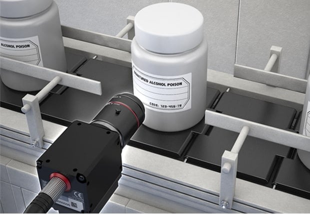 容器に巻きつけられたラベルのずれを検査します。ずれだけではなく、めくれなどの外観不良も同時に検査可能です。