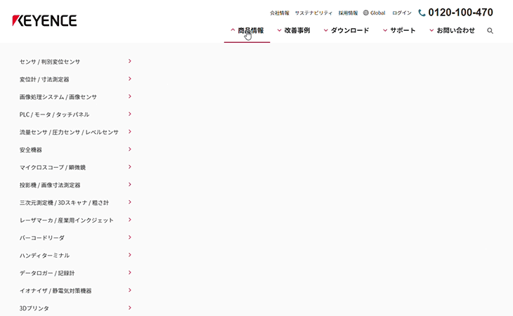 型式・商品名・キーワードで検索して、見たい商品に直接たどり着ける。