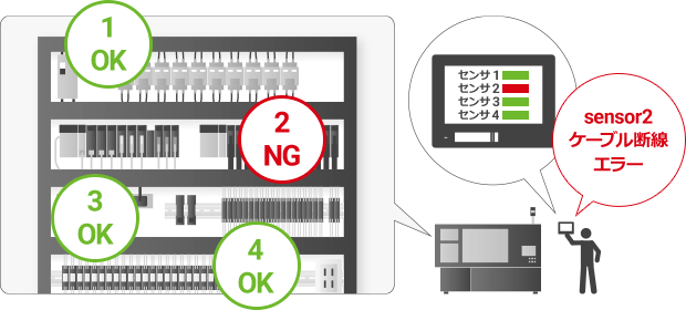 - センサの故障箇所や異常の要因がすぐにわかるので、迅速な復旧対応を実現できます。