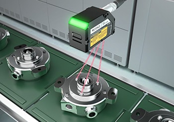 カメラ内蔵レーザ変位センサ「IXシリーズ」は、画像センサとレーザ変位センサの機能を備えています。ワークを画像で捉え、指定したポイントをレーザで検出するため、ねじの有無と高さを同時に判別することができます。1台で最大108.5×81.0mmの範囲を検出できるため、正確な位置合わせも不要です。また、4パターンの照明点灯を備えた照明装置を内蔵しているので、ハレーションによる誤検知も軽減できます。