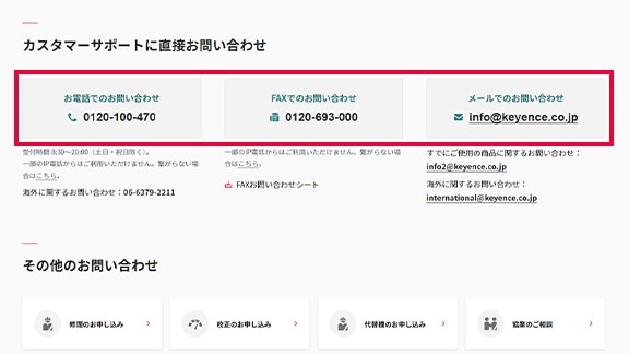 Webサイト内の各種お問い合わせフォーム以外でのお問い合わせをご希望のお客さまは、「お問い合わせ」ページよりお電話もしくはファックス(FAX)、メールでお問い合わせください。