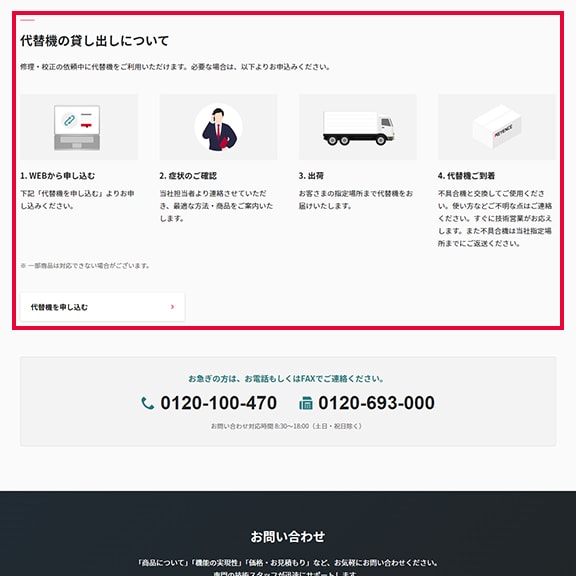 修理・校正の依頼中に代替機をご利用いただけます。必要な場合は、こちらよりお申込みください。