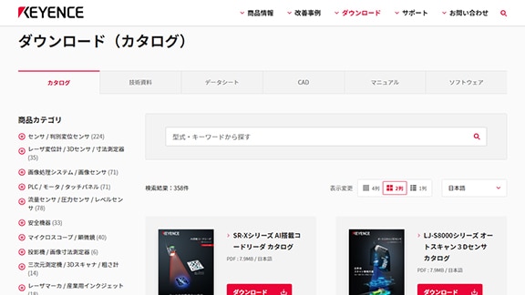 ダウンロードしたい資料の種別に応じて絞り込みが可能です。