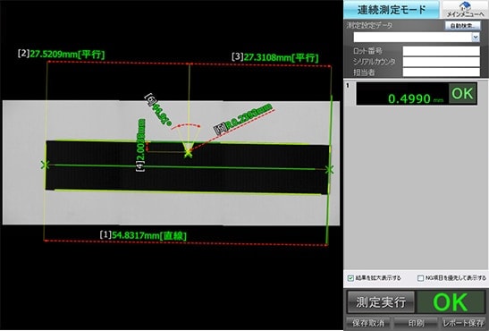 全長・ノッチ角度・ノッチ高さ・ノッチ底Rの測定と測定箇所が多いので、投影機だとすごく時間がかかるんだよね。 また、人による測定誤差が出てしまうので規格通りかどうか怪しいこともあるんだよ。