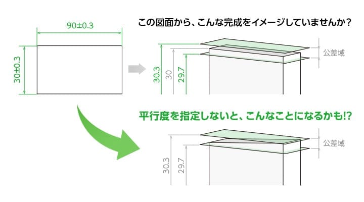 そんな公差は、寸法公差(普通公差)と幾何公差に分けることができます。今回は、幾何公差の中でも姿勢偏差にあたる「平行度」についてご説明していきます。