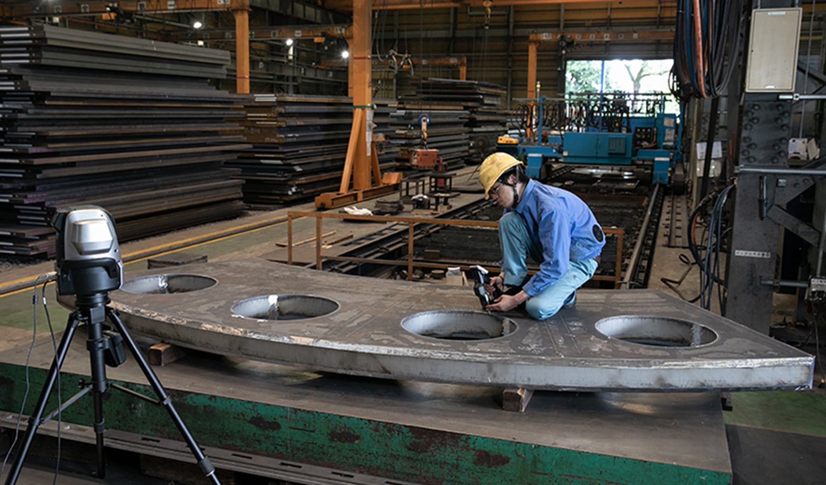 また、大型の加工品の測定にはコンベックスを用いて二人でおこなっていましたが、揺れやたわみの影響で正確な計測が難しく、時間もかかっていました。