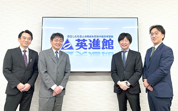 英進館株式会社 代表取締役社長 筒井 俊英氏、取締役 宮園雅樹氏、取締役 中村昌慈氏、営業部課長 理事 髙野耕司氏に、KIを導入した経緯とその効果について詳しく聞きました。