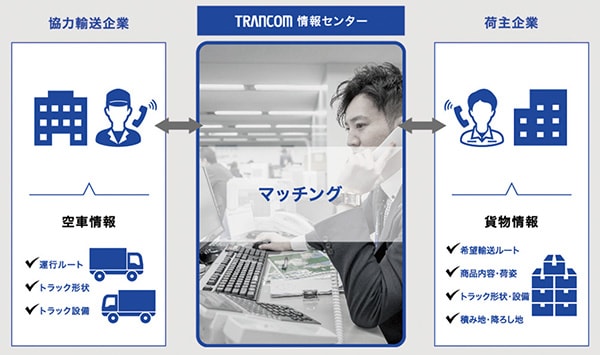 マッチングサービスというと、「ポータルサイトを作って、そこに顧客がアクセスするのを待ち続ける」というイメージがありますが、物流マッチングでは、少々、事情が異なります。たとえば弊社スタッフが荷主に電話し、「とあるトラックが⼤阪から福岡まで荷物を運びました。その帰り道でよければ、お安く運べますよ」と積極的に営業することは珍しくありません。現在収集している貨物・空⾞、各情報のうち実に40%が、こちらから提案して実現する「アクティブ案件」です。