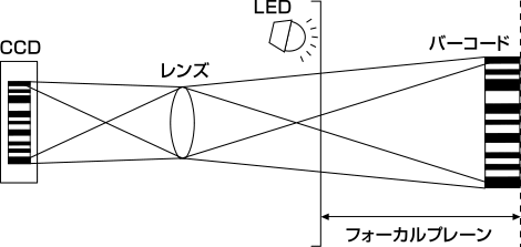 CCDバーコードリーダは、カメラと同じように、読み取りたいバーコードの画像をレンズを使い、CCDイメージセンサ上に結像させているため、焦点(ピント)が合っていないと読み取ることができません。