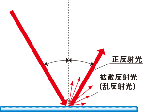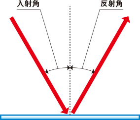 鏡面反射の場合、入射角と反射角が等しくなり、拡散反射はほとんどおきません。