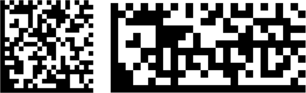 - DataMatrix(データマトリックス)コードは、1987年にアイディマトリックス社によって開発されたマトリックス型の2次元コードです。1996年AIMIのISS規格に登録され、2000年にISO/IEC規格になっています。DataMatrix(データマトリックス)には、ECC000、ECC050、ECC080、ECC100、ECC140という古いバージョンとECC200という新しいバージョンがあります、古いバージョンは歪みに弱く、現在では歪みに対するエラー訂正機能を向上させたバージョン「ECC200」が使用されています。DataMatrix(データマトリックス)は、正方形タイプと長方形タイプがあり、シンボルサイズは10×10~144×144までの24種類(長方形は6種類)に分けられます。また、シンボルサイズが26×26セル以上(データセルでは24×24セル以上)になる場合、シンボルを分割して1ブロックのデータセルが24×24セル以上にならないようにすることで歪みに対して強くしています。