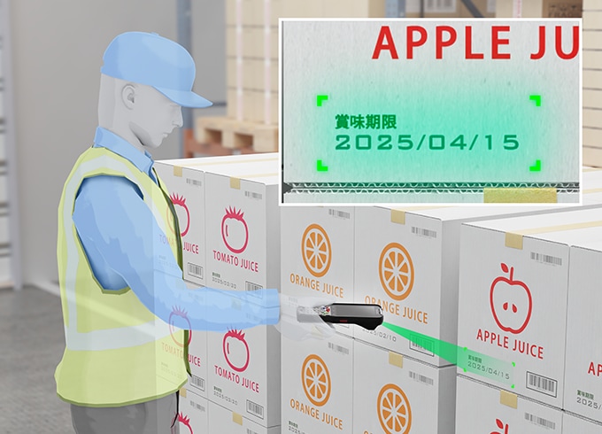 ハンディターミナルの中には、印刷された文字列をデータとして収集する「OCR」(Optical Character Reader)機能を搭載した製品もあります。OCRを活用すれば、キー入力や音声入力よりもはるかにスピーディーにデータ入力が行え、大幅な業務効率化が図れます。たとえば、製造年月日や賞味期限などの文字列は、ハンディターミナルでスキャンすればすぐにデータ化が可能です。人間が目視して確認したり手で入力する必要がないので、ミスや漏れを防ぐことができます。また、読み取った文字列データをバーコード付きのラベルとして発行することで、その後の運用を効率的に進められます。