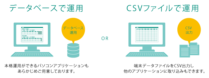 運用にあたっては通信の相手方となるPCやサーバ、電力を供給するバッテリーおよび専用の充電器、場合によっては記録したデータを出力する専用のプリンタなどが必要になります。また、使用環境や目的に合わせてデータをどう集計し、加工するか、PC上などで集計したデータをどう表示させるかといったシステム上の機能や操作性に関わるソフトウェア開発も必須となります。そこで導入前にハードウェアやソフトウェアなどの周辺機器・環境をよく検討することが大切です。