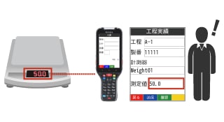 原料投入の際の計量機の数値データを読むことで、秤量時の重量の目視チェックのミスを撲滅します。