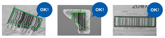 「SR-5000シリーズ」であれば、しわ・やぶれ・フィルム越しといったさまざまな悪条件下でもコードの読み取りが可能です。