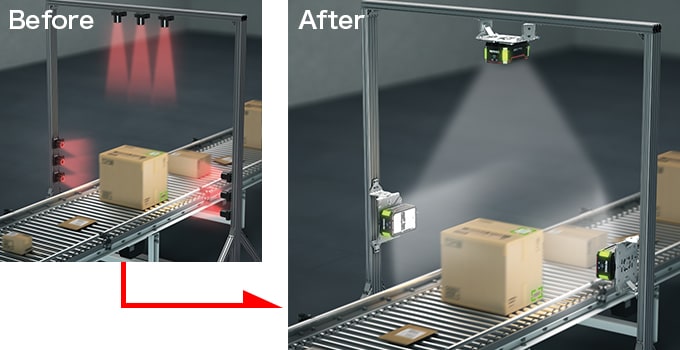 - After:コード読み取り性能の向上・省スペース化でライン全体を改善