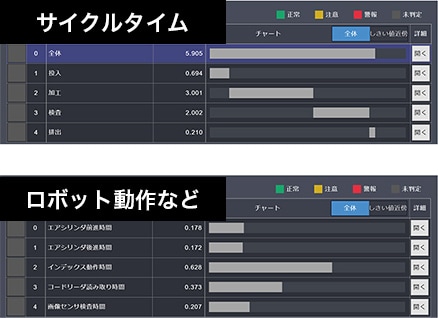 定期的に監視して変化を見ることができるので、先ほど「事例3」で上げたサイクルタイムの変化にすぐに気づけますし、原因追究のための労力もほぼなくなりますから。