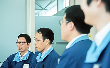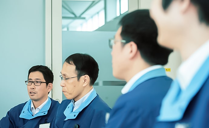 ここでは生産設備を作るほか、新たな生産技術の開発にも取り組んだり、さまざまな部署や業種の従業員たちと技術的な連携をおこなったりしています。