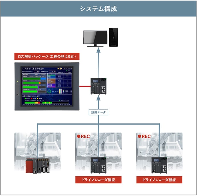 ドライブレコーダ機能を使用すると、トラブルが発生した前後のラダープログラムの動作状況、人や外部機器からの変更履歴などあらゆるデータを紐付けて保存します。