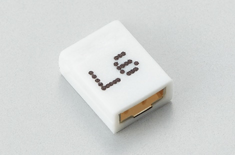 コネクタやスイッチなどの電子部品に対し、パーツフィーダーで製品を切り出したタイミングでIJPで印字を行います。