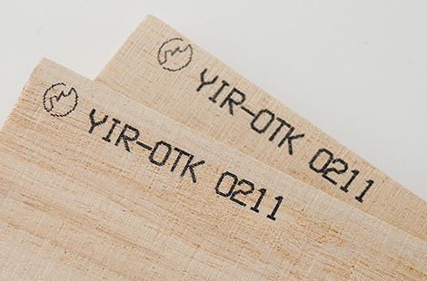 木材や耐熱ボードなどの建材にも非接触でインクを吹き付けて印字するIJPが有効です。