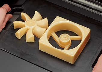3Dプリンタで造形する場合、造形モデル自体の材料にあたる「モデル材」と、形状を保持する「サポート材」という2種類の樹脂を使用します。モデル材には、「アクリル」「ABS」「ポリカーボネート」「ナイロン」などが使われますが、積層しているために成形品と同じ特性にならないことに注意が必要です。また、方式毎に使える材料が限定されるため、目的や用途に応じて造形方式を選択することが大切になります。