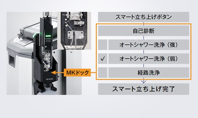 ボタンを押すだけでプリンタが状態を把握し、洗浄方法を自動で選択。適切な処置を必要なだけ実施し、常にベストな状態をキープします。