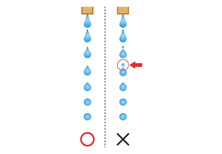 ヘッド内が汚れると、正しく印字ができません。キーエンスのインクジェットプリンターでは、自動洗浄&乾燥機能を搭載!ノズル、帯電電極板、偏向電極板に高圧洗浄液を噴射し、洗浄後は内部を乾燥させます。