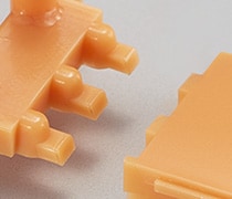CO2 レーザーは対象物に熱をかける方式のため、印字以外にも穴あけやゲートカット、ハーフカットなどの加工用途にも用いられます。刃物などでの機械的な加工に比べ、摩耗による品質低下の防止やメンテナンスフリーといったメリットがあります。