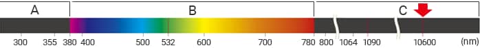 レーザーのタイプは、光の波長によってわかれます。