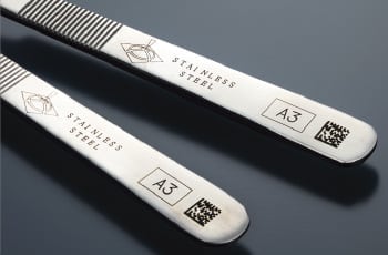 医療手術器具・鋼製小物は2次元コードを使用しての使用履歴管理が加速しています。これらの器具に鮮明で読み取り確実な 2次元コードを印字するには、ハイパワーでの刻印が必要です。最高出力50WのMD-Fシリーズならば高速で鮮明なレーザー刻印が可能なため、医療現場での信頼性向上に貢献するだけでなく、マーキングの作業効率を大幅に改善します。