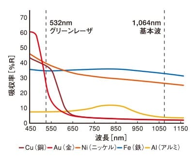 1064nmの波長は金属全般に加工が可能ですが、銅に対しては極端に吸収率が下がります。そのため、銅の芯線にはダメージを最小限に、被膜のみを剥離することが可能になります。