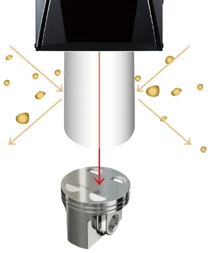 インラインでの設置では掃除が手間になるのはなおさら。周囲からの飛散する油がレンズに付着することを防ぐことでメンテナンスフリーを実現します。場合によってカバー内をエアパージするのも効果的です。