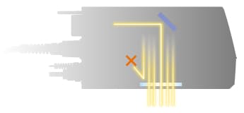 ウィンドウ内部の汚れ検知センサが、ウィンドウ全域に光を照射し、それぞれの光が正しく反射されているかどうかで汚れの有無を確認します。ウィンドウが汚れている場合は、レンズ面で光が反射されることで汚れを検知できます。