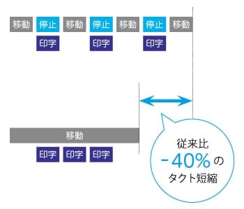 「移動⇒停止⇒印字⇒移動⇒停止⇒印字…」の間欠送り式ではさらなる高速化に対応できません。