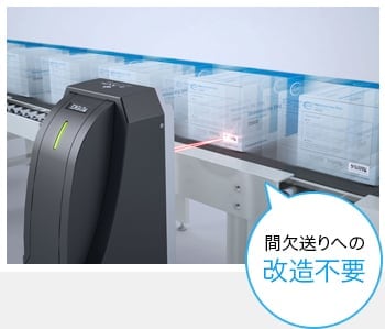 従来機種では、既存のコンベアが、連続式の場合、間欠送り式に改造する必要がありました。