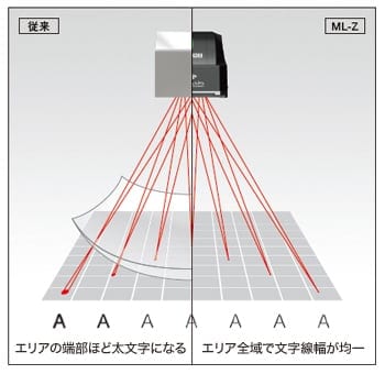移動印字では、エリア全域を使って印字するためエリアの端まで焦点を合わせることが重要です。