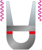 2つの樹脂同士を治具などで加圧しながらレーザー照射。有色(吸収)樹脂側で発生した熱により2つの樹脂が融解します。
