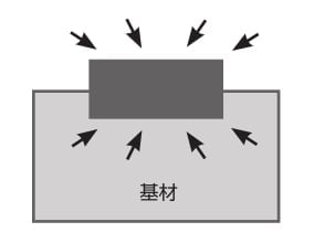 「基材」にレーザーのエネルギーが吸収されると、その熱効果により分子密度が上がり、凝縮されて濃色に変色します。