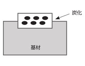 さらに高いエネルギーを照射し続けると、「基材」周辺の素材の高分子が炭化して黒く発色します。